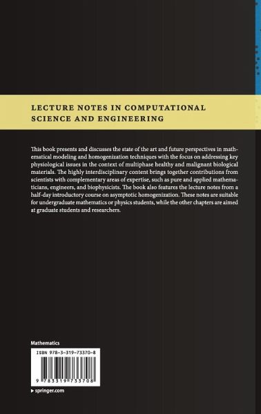 This book presents and discusses the state of the art and future perspectives in mathematical modeling and homogenization techniques with the focus on addressing key physiological issues in the context of multiphase healthy and malignant biological materials. The highly interdisciplinary content brings together contributions from scientists with complementary areas of expertise, such as pure and applied mathematicians, engineers, and biophysicists. The book also features the lecture notes from a half-day introductory course on asymptotic homogenization. These notes are suitable for undergraduate mathematics or physics students, while the other chapters are aimed at graduate students and researchers.