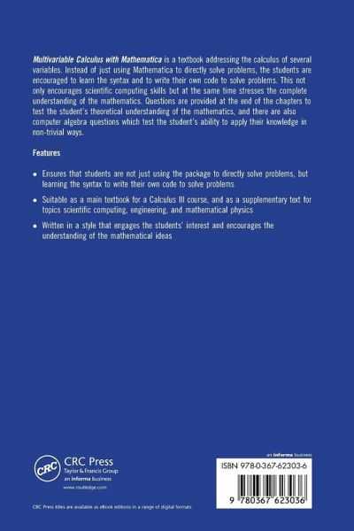 "Under the philosophical principle: "Mathematics feeds Mathematica", this highly innovative Calculus III textbook prepares students for a comprehensive mathematical understanding of the subject matter coupled with programming skills."