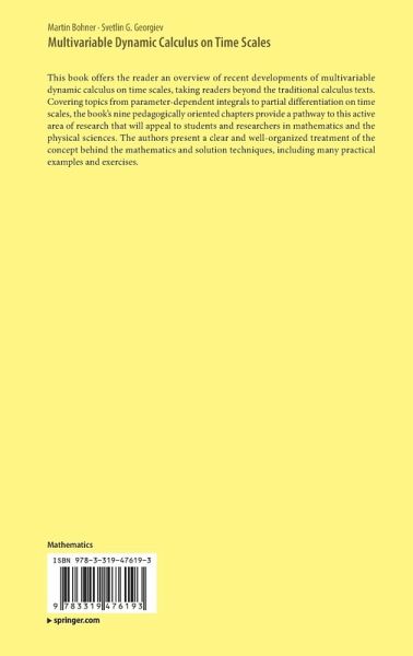 This book offers the reader an overview of recent developments of multivariable dynamic calculus on time scales, taking readers beyond the traditional calculus texts. Covering topics from parameter-dependent integrals to partial differentiation on time scales, the book's nine pedagogically oriented chapters provide a pathway to this active area of research that will appeal to students and researchers in mathematics and the physical sciences. The authors present a clear and well-organized treatment of the concept behind the mathematics and solution techniques, including many practical examples and exercises.