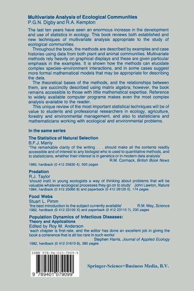 The last ten years have seen an enormous increase in the development and application of multivariate methods in ecology; indeed the perceived importance of these methods for elucidating the complex interactions observed in community studies is shown by the number of recent books devoted to introducing the more common multivariate techniques to ecologists (Williams, 1976; Orloci, 1978; Whittaker, 1978a, b; Gauch, 1982; Legendre and Legendre, 1983; Pielou, 1984) and by the chapters added to new editions of more general texts on quantitative ecology (e.g. Greig-Smith, 1983; Kershaw and Looney, 1985). Two reasons can be put forward to explain this development. The first is undoubtedly the increasing availability of cheap computing power which makes it feasible to analyse the large data matrices involved in community studies. The second, perhaps less widely appreciated, is the change in emphasis of theoretical work on multivariate analysis, away from the development of formal statistical models and associated distribution theory towards descrip tive techniques for exploring pattern in data sets and providing succinct summaries and displays. This new approach, termed 'pattern analysis' by Williams (1976), has led to a range of statistical techniques which have been enthusiastically taken up by ecologists to replace the collection of ad hoc procedures developed over the years for analysing community data.