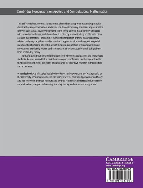 This self-contained, systematic treatment of multivariate approximation begins with classical linear approximation, and moves on to contemporary nonlinear approximation. It covers substantial new developments in the linear approximation theory of classes with mixed smoothness, and shows how it is directly related to deep problems in other areas of mathematics. For example, numerical integration of these classes is closely related to discrepancy theory and to nonlinear approximation with respect to special redundant dictionaries, and estimates of the entropy numbers of classes with mixed smoothness are closely related to (in some cases equivalent to) the Small Ball Problem from probability theory. The useful background material included in the book makes it accessible to graduate students. Researchers will find that the many open problems in the theory outlined in the book provide helpful directions and guidance for their own research in this exciting and active area.