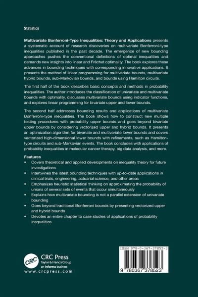 This book presents a systematic account of research discoveries on multivariate Bonferroni-type inequalities published in the past decade. The emergence of new bounding approaches pushes the conventional definitions of optimal inequalities and demands new insights into linear and Fréchet optimality. The book explores these advances in bounding techniques with corresponding innovative applications. It presents the method of linear programming for multivariate bounds, multivariate hybrid bounds, sub-Markovian bounds, and bounds using Hamilton circuits.