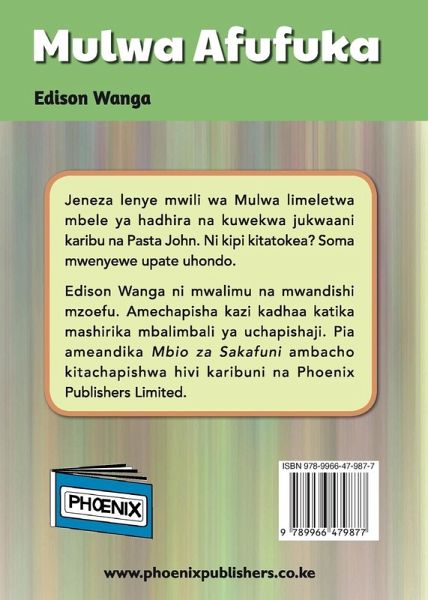 Jeneza lenye mwili wa Mulwa limeletwa mbele ya hadhira na kuwekwa jukwaani karibu na Pasta John. Ni kipi kitatokea? Soma mwenyewe upate uhondo. Edison Wanga ni mwalimu na mwandishi mzoefu. Amechapisha kazi kadhaa katika mashirika mbalimbali ya uchapishaji. Pia ameandika Mbio za Sakafuni ambacho kitachapishwa hivi karibuni na Phoenix Publishers Limited.