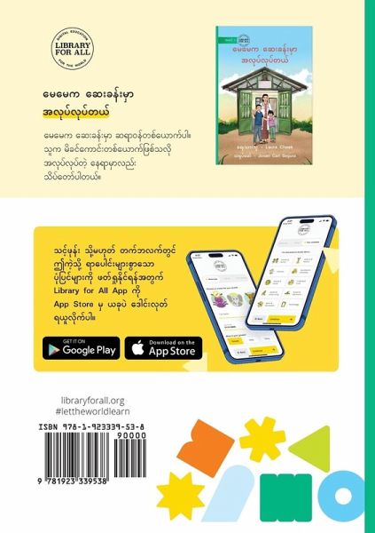Mum is now a doctor at the village clinic! She's just as good at working as she is at being our mum. မေမေက ဆးခန်းမှာ ဆရာဝန်တစ်ယောက်ပါ၊၊သူက မိခင်ကောင်းတစ်ယောက်ဖြစ်သလို အလုပ်လုပ်တဲ့နေရာမှာလည်း သိပ်တော်ပါတယ်။ Your purchase of this book supports Library For All in its mission to make knowledge available to all, equally.