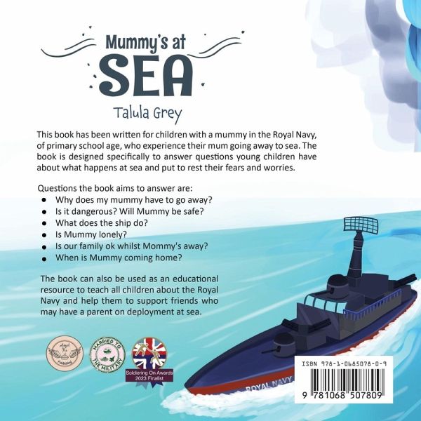 Mummy's at Sea is a beautifully illustrated and heartfelt story for children who have a parent serving at sea. Designed to provide comfort and understanding, this book answers the many questions kids may have about their mummy's role in the Royal Navy, such as: * Why does Mummy have to go to sea? * Is it dangerous? Will Mummy be safe? * What does Mummy do on her missions? * Is Mummy lonely while she's away? * How will our family cope while Mummy is gone? * When will Mummy come home? Through relatable storytelling and engaging illustrations, this book explores the bravery of sailors and the strength of their families. It reassures children while celebrating the vital work of the Royal Navy, from protecting trade routes and fostering peace to providing humanitarian aid around the world. Perfect for: * Royal Navy families experiencing deployments * Schools teaching about the armed forces and the lives of service members * Building empathy and understanding among classmates and friends Whether you're part of a Navy family or simply curious about life at sea, Mummy's at Sea is a moving tribute to the resilience and courage of military families.