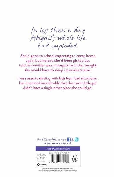 The fifth book from bestselling author and specialist foster carer Casey Watson. A recent census shows that there are at least 175,000 child carers in the UK, 13,000 of whom care for more than 50 hours a week. Many remain invisible to a system that would otherwise help them. Abigail is one of those children. This is her story.