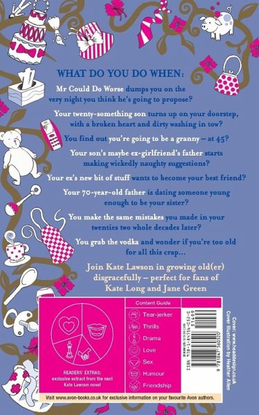 Whoever said life began at 40 was dead right… A riotous romantic comedy about never-ending motherhood, second chances and growing old disgracefully. What do you do when: Mr Could Do Worse dumps you on the very night you think he's going to propose? Your twenty-something son turns up on your doorstep, with a broken heart and dirty washing in tow? You find out you're going to be a granny – at 45? Your son's maybe ex-girlfriend's father starts making wickedly naughty suggestions? Your ex's new bit of stuff wants to become your new best friend? Your 70-year-old father is dating someone young enough to be your sister? You make the same mistakes you made in your twenties two whole decades later? You can't get the one person you want out of your head? You grab the vodka and wonder if you're too old for all this crap…