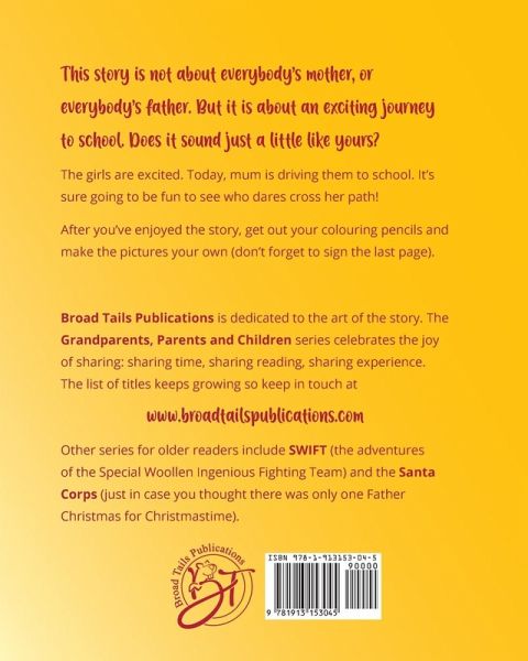 This story is not about everybody's mother, or everybody's father. But it is about an exciting journey to school. Does it sound just a little like yours? The girls are excited. Today, mum is driving them to school. It's sure going to be fun to see who dares cross her path!