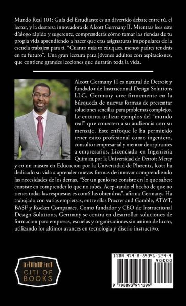 Mundo Real 101: Guía del Estudiante es un divertido debate entre tú, el lector, y la destreza innovadora de Alcott Germany II. Mientras lees este díalogo rápido y sugerente, comprenderás cómo tomar las riendas de tu propia vida aprendiendo a hacer que eras asignaturas impopulares de la escuela trabajen para ti. "Cuanto más to eduques, menos padres tendrás en tu futuro". Una gran lectura para jóvenes adultos con aspiraciones, que contiene grandes lecciones que durarán toda la vida.