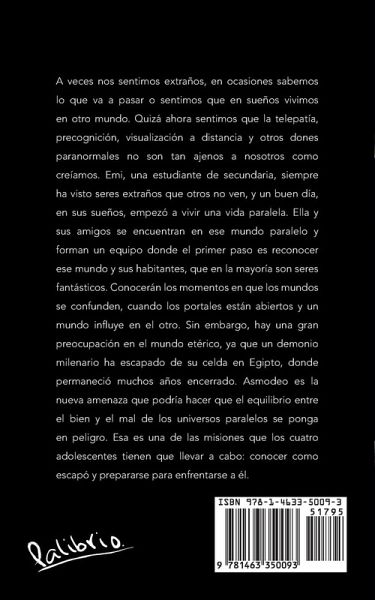 A veces nos sentimos extraños, en ocasiones sabemos lo que va a pasar o sentimos que en sueños vivimos en otro mundo. Quizá ahora sentimos que la telepatía, precognición, visualización a distancia y otros dones paranormales no son tan ajenos a nosotros como creíamos. Emi, una estudiante de secundaria, siempre ha visto seres extraños que otros no ven, y un buen día, en sus sueños, empezó a vivir una vida paralela. Ella y sus amigos se encuentran en ese mundo paralelo y forman un equipo donde el primer paso es reconocer ese mundo y sus habitantes, que en la mayoría son seres fantásticos. Conocerán los momentos en que los mundos se confunden, cuando los portales están abiertos y un mundo influye en el otro. Sin embargo, hay una gran preocupación en el mundo etérico, ya que un demonio milenario ha escapado de su celda en Egipto, donde permaneció muchos años encerrado. Asmodeo es la nueva amenaza que podría hacer que el equilibrio entre el bien y el mal de los universos paralelos se ponga en peligro. Esa es una de las misiones que los cuatro adolescentes tienen que llevar a cabo: conocer como escapó y prepararse para enfrentarse a él.