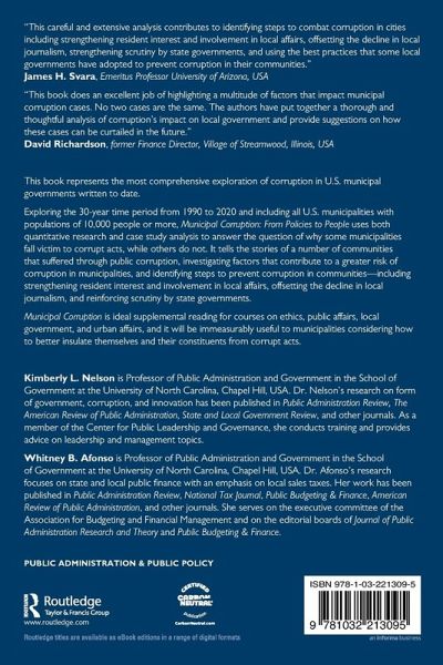 This book does an excellent job of highlighting a multitude of factors that impact municipal corruption cases. No two cases are the same. The authors have put together a thorough and thoughtful analysis of corruption's impact on local government and provide suggestions on how these cases can be curtailed in the future."
