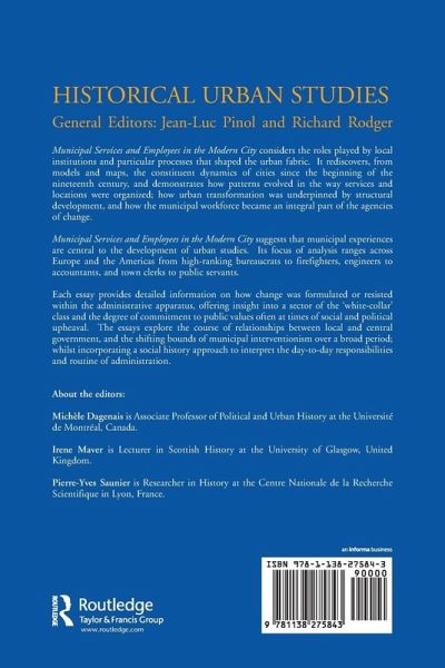 Municipal Services and Employees in the Modern City considers the roles played by local institutions and particular processes that shaped the urban fabric. It rediscovers from models and maps the constituent dynamics of cities since the beginning of the nineteenth century, and demonstrates how patterns evolved in the way services and locations were organized; how urban transformation was underpinned by structural development, and how the municipal workforce became an integral part of the agencies of change. Municipal Services and Employees in the Modern City suggests that municipal experiences are central to the development of urban studies. Its focus of analysis ranges across Europe and the Americas from high-ranking bureaucrats to firefighters, engineers to accountants, and town clerks to public servants. Each essay provides detailed information on how change was formulated or resisted within the administrative apparatus, offering insight into a sector of the 'white-collar' class and the degree of commitment to public values often at times of social and political upheaval. They explore the course of relationships between local and central government, and the shifting bounds of municipal interventionism over a broad period; whilst incorporating a social history approach to interpret the day-to-day responsibilities and routine of administration.