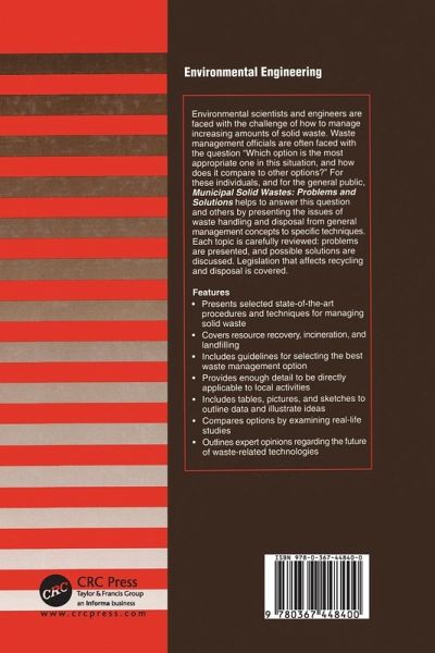 Environmental scientists and engineers are faced with the challenge of how to manage increasing amounts of solid waste. Furthermore, waste management officials are constantly faced with the question "Which option is the most appropriate one in this situation, and how does it compare to other options?" For these individuals, and for the general public, Municipal Solid Wastes: Problems and Solutions helps to answer this and other questions by presenting the issues of waste handling and disposal-from general management concepts to specific techniques. Each topic is carefully reviewed: problems are presented, and possible solutions are discussed. Legislation that affects recycling and disposal is covered.