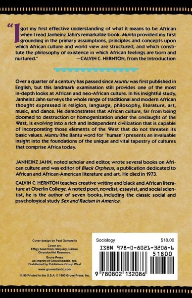 In this insightful study, Jahn surveys the whole range of traditional and modern African thought expressed in religion, language, philosophy, literature, art, music, and dance. He demonstrates that African culture is evolving into a rich and independent civilization that is capable of incorporating those elements of the West that do not threaten its basic values.