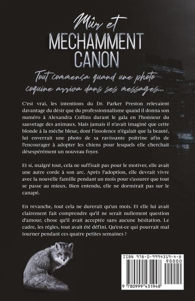 Tout commença quand une photo coquine arriva dans ses messages... C'est vrai, les intentions du Dr. Parker Preston relevaient davantage du désir que du professionnalisme quand il donna son numéro à Alexandra Collins durant le gala en l'honneur du sauvetage des animaux. Mais jamais il n'avait imaginé que cette blonde à la mèche bleue, dont l'insolence n'égalait que la beauté, lui enverrait une photo de sa ravissante poitrine afin de l'encourager à adopter les chiens pour lesquels elle cherchait désespérément un nouveau foyer. Et si, malgré tout, cela ne suffisait pas pour le motiver, elle avait une autre corde à son arc. Après l'adoption, elle devrait vivre avec la nouvelle famille pendant un mois pour s'assurer que tout se passe au mieux. Bien entendu, elle ne dormirait pas sur le canapé. En revanche, tout cela ne durerait qu'un mois. Et elle lui avait clairement fait comprendre qu'il ne serait nullement question d'amour, chose qu'il avait acceptée sans aucune hésitation. Le cadre, les règles, tout avait été défini. Qu'est-ce qui pourrait mal tourner pendant ces quatre petites semaines ?