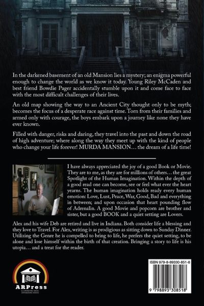 In the darkened basement of an old Mansion lies a mystery; an enigma powerful enough to change the world as we know it today. Young Riley McCaden and best friend Bowdie Pager accidentally stumble upon it and come face to face with the most difficult challenges of their lives.An old map showing the way to an Ancient City thought only to be myth; becomes the focus of a desperate race against time. Torn from their families and armed only with courage, the boys embark upon a journey like none they have ever known.Filled with danger, risks and daring, they travel into the past and down the road of high adventure; where along the way they meet up with the kind of people who change your life forever! MURDA MANSION... the dream of a life time!