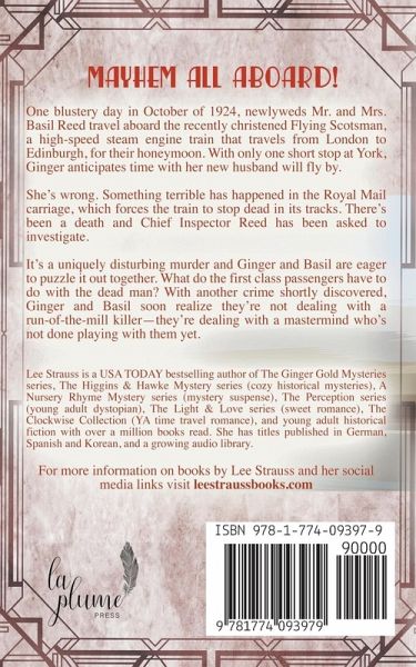 "Clever and entertaining, you'll love this charming Golden Age mystery series. And the fashion is to die for!" - Molly C. Quinn, actress, Castle Mayhem All Aboard! One blustery day in October of 1924, newlyweds Mr. and Mrs. Basil Reed travel aboard the recently christened Flying Scotsman, a high-speed steam train that travels from London to Edinburgh, for their honeymoon. With only one short stop at York, Ginger anticipates time with her new husband will fly by. She's wrong. Something terrible has happened in the Royal Mail carriage, which forces the train to stop dead in its tracks. There's been a death and Chief Inspector Reed has been asked to investigate. It's a uniquely disturbing murder and Ginger and Basil are eager to puzzle it out together. What do the first class passengers have to do with the dead man? With another crime shortly discovered, Ginger and Basil soon realise they're not dealing with a run-of-the-mill killer-they're dealing with a mastermind who's not done playing with them yet. ¿¿¿¿¿ Researching for the Ginger Gold Mysteries has been so much fun. I hope you sense that as you read. Ginger Gold is smart, savvy, and delightful. The fashions, the dances, the CRIME. The character of Haley Higgins, a medical student at the London Medical School for Women allows me to further delve into another keen interest of mine: forensics. Never fear, the Ginger Gold Mysteries are COZY, so no scary, graphic on-stage violence. You'll find these books to be clean reads, with no swearing or sex. I hope you enjoy the Ginger Gold Mystery series! Hop aboard the 1920s! THE GINGER GOLD MYSTERY SERIES Murder on the SS Rosa (Book 1) Murder at Hartigan House (Book 2) Murder at Bray Manor (Book 3) Murder at Feathers & Flair (Book 4) Murder at the Mortuary (Book 5) Murder at Kensington Gardens (Book 6) Murder at st. George's Church (Book 7) The Wedding of Ginger & Basil (Book 7.5) Murder Aboard the Flying Scotsman (Book 8) Murder at the Boat Club (Book 9) Murder on Eaton Square (Book 10) Murder by Plum Pudding (Book 11) Murder on Fleet Street (Book 12) Murder at Brighton Beach (Book 13) Murder at Hyde Park (Book 14) Murder at Royal Albert Hall (Book 15) Murder in Belgravia (Book 16) Murder on Mallowan Court (Book 17) Murder at the Savoy (Book 18) Murder at the Circus (Book 19) ~more on the way!