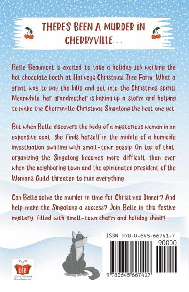 Belle Beaumont is excited to take a holiday job working the hot chocolate booth at Harvey's Christmas Tree Farm. What a great way to pay the bills and get into the Christmas spirit! Meanwhile, her grandmother is baking up a storm and helping to make the Cherryville Christmas Singalong the best one yet. But when Belle discovers the body of a mysterious woman in an expensive coat, she finds herself in the middle of a homicide investigation swirling with small-town gossip. On top of that, organizing the Singalong becomes more difficult than ever when the neighboring town and the opinionated president of the Woman's Guild threaten to ruin everything. Can Belle solve the murder in time for Christmas Dinner? And help make the Singalong a success? Join Belle in this festive mystery, filled with small-town charm and holiday cheer!
