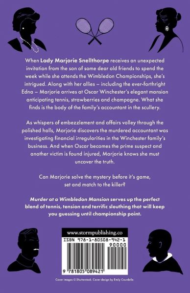 Anyone for murder? When Lady Marjorie Snellthorpe receives an unexpected invitation from the son of some dear old friends to spend the week while she attends the Wimbledon Championships, she's intrigued. Along with her allies - including the ever-forthright Edna - Marjorie arrives at Oscar Winchester's elegant mansion anticipating tennis, strawberries and champagne. What she finds is the body of the family's accountant in the scullery. As whispers of embezzlement and affairs volley through the polished halls, Marjorie discovers the murdered accountant was investigating financial irregularities in the Winchester family's business. And when Oscar becomes the prime suspect and another victim is found injured, Marjorie knows she must uncover the truth. Can Marjorie solve the mystery before it's game, set and match to the killer? Murder at a Wimbledon Mansion serves up the perfect blend of tennis, tension and terrific sleuthing that will keep you guessing until championship point.