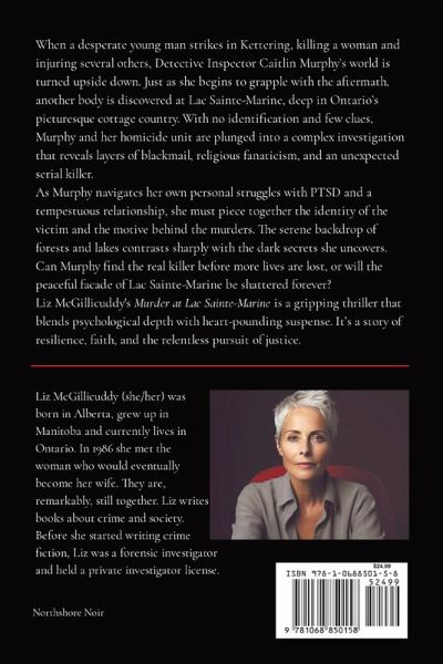 When a desperate young man strikes in Kettering, killing a woman and injuring several others, Detective Inspector Caitlin Murphy's world is turned upside down. Just as she begins to grapple with the aftermath, another body is discovered at Lac Sainte-Marine, deep in Ontario's picturesque cottage country. With no identification and few clues, Murphy and her homicide unit are plunged into a complex investigation that reveals layers of blackmail, religious fanaticism, and an unexpected serial killer. As Murphy navigates her own personal struggles with PTSD and a tempestuous relationship, she must piece together the identity of the victim and the motive behind the murders. The serene backdrop of forests and lakes contrasts sharply with the dark secrets she uncovers. Can Murphy find the real killer before more lives are lost, or will the peaceful facade of Lac Sainte-Marine be shattered forever? Liz McGillicuddy's Murder at Lac Sainte-Marine is a gripping thriller that blends psychological depth with heart-pounding suspense. It's a story of resilience, faith, and the relentless pursuit of justice.