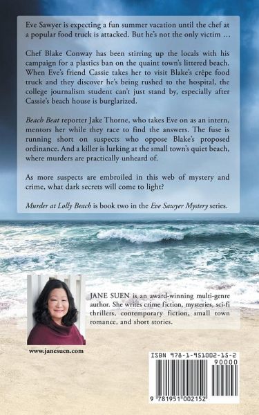 Eve Sawyer is expecting a fun summer vacation until the chef at a popular food truck is attacked. But he's not the only victim ... Chef Blake Conway has been stirring up the locals with his campaign for a plastics ban on the quaint town's littered beach. When Eve's friend Cassie takes her to visit Blake's crêpe food truck and they discover he's being rushed to the hospital, the college journalism student can't just stand by, especially after Cassie's beach house is burglarized. Beach Beat reporter Jake Thorne, who takes Eve on as an intern, mentors her while they race to find the answers. The fuse is running short on suspects who oppose Blake's proposed ordinance. And a killer is lurking at the small town's quiet beach, where murders are practically unheard of. As more suspects are embroiled in this web of mystery and crime, what dark secrets will come to light? Murder at Lolly Beach is the second book in the Eve Sawyer Mystery series. It can be read as a standalone.