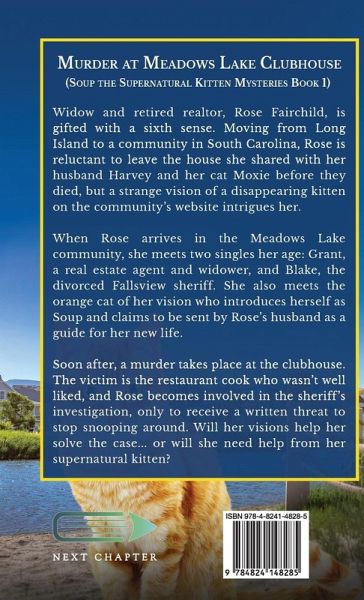 Widow and retired realtor, Rose Fairchild, is gifted with a sixth sense. Moving from Long Island to a community in South Carolina, Rose is reluctant to leave the house she shared with her husband Harvey and her cat Moxie before they died, but a strange vision of a disappearing kitten on the community's website intrigues her. When Rose arrives in the Meadows Lake community, she meets two singles her age: Grant, a real estate agent and widower, and Blake, the divorced Fallsview sheriff. She also meets the orange cat of her vision who introduces herself as Soup and claims to be sent by Rose's…mehr