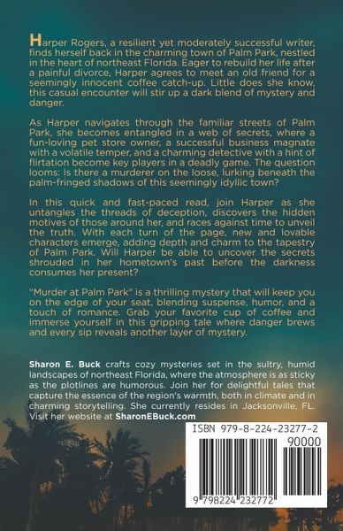 Harper Rogers, a resilient yet moderately successful writer, finds herself back in the charming town of Palm Park, nestled in the heart of northeast Florida. Eager to rebuild her life after a painful divorce, Harper agrees to meet an old friend for a seemingly innocent coffee catch-up. Little does she know, this casual encounter will stir up a dark blend of mystery and danger. As Harper navigates through the familiar streets of Palm Park, she becomes entangled in a web of secrets, where a fun-loving pet store owner, a successful business magnate with a volatile temper, and a charming detective with a hint of flirtation become key players in a deadly game. The question looms: Is there a murderer on the loose, lurking beneath the palm-fringed shadows of this seemingly idyllic town? In this quick and fast-paced read, join Harper as she untangles the threads of deception, discovers the hidden motives of those around her, and races against time to unveil the truth. With each turn of the page, new and lovable characters emerge, adding depth and charm to the tapestry of Palm Park. Will Harper be able to uncover the secrets shrouded in her hometown's past before the darkness consumes her present? "Murder at Palm Park" is a thrilling mystery that will keep you on the edge of your seat, blending suspense, humor, and a touch of romance. Grab your favorite cup of coffee and immerse yourself in this gripping tale where danger brews and every sip reveals another layer of mystery.