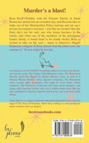 Murder's a blast!Rosa Reed's holiday with the Forester Family in Santa Bonita has turned into an extended stay, and Rosa decides to make use of her Metropolitan Police training and sets up a private investigative business ~ just like her mother! But she finds she's not the only one who keeps business in the family, and when one of the members of the prestigious Gainer family is found dead in his bomb shelter, Rosa is invited to take on the case ~ much to Detective Miguel Belmonte's chagrin. If Rosa doesn't find the killer soon, the summer of '56 just might be her last.If you love early rock & roll, poodle skirts, clever who-dun-its, a charming cat and an even more charming detective, you're going to love this new series!