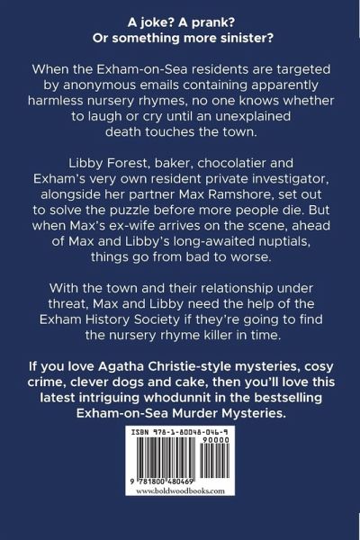 A joke? A prank? Or something more sinister? When the Exham-on-Sea residents are targeted by anonymous emails containing apparently harmless nursery rhymes, no one knows whether to laugh or shudder until an unexplained death touches the town. Libby Forest, baker, chocolatier and Exham's very own resident private investigator, alongside her partner Max Ramshore, set out to solve the puzzle before more people die. But when Max's ex-wife arrives on the scene, ahead of Max and Libby's long-awaited nuptials, things go from bad to worse. With the town and their relationship under threat, Max and Libby need the help of the Exham History Society if they're going to find the nursery rhyme killer in time. Murder at the Gorge is the seventh in a series of Exham-on-Sea Murder Mysteries set at the small English seaside town full of quirky characters, sea air, and gossip. If you love Agatha Christie-style mysteries, cosy crime, clever dogs and cake, then you'll love these intriguing whodunnits.