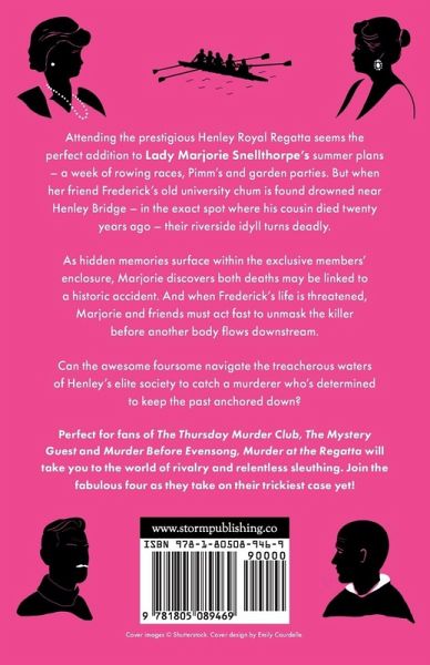 The Henley Royal Regatta - where dark secrets rise to the surface. Attending the prestigious Henley Royal Regatta seems the perfect addition to Lady Marjorie Snellthorpe's summer plans - a week of rowing races, Pimm's and garden parties. But when her friend Frederick's old university chum is found drowned near Henley Bridge - in the exact spot where his cousin died twenty years ago - their riverside idyll turns deadly. As hidden memories surface within the exclusive members' enclosure, Marjorie discovers both deaths may be linked to a historic accident. And when Frederick's life is threatened, Marjorie and friends must act fast to unmask the killer before another body flows downstream. Can the awesome foursome navigate the treacherous waters of Henley's elite society to catch a murderer who's determined to keep the past anchored down? Perfect for fans of The Thursday Murder Club, The Mystery Guest and Murder Before Evensong, Murder at the Regatta will take you to the world of rivalry and relentless sleuthing. Join the fabulous four as they take on their most tricky case yet!