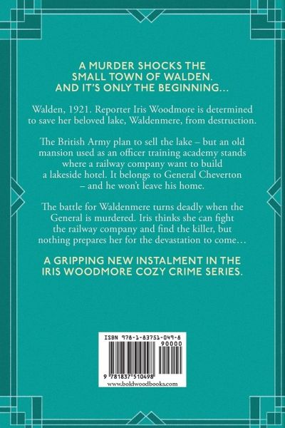 A murder shocks the small town of Walden. And it's only the beginning... Walden, 1921. Local reporter Iris Woodmore is determined to save her beloved lake, Waldenmere, from destruction. After a bloody and expensive war, the British Army can't afford to keep the lake and build a convalescent home on its shores yet they still battle with Walden Council and a railway company for ownership. But an old mansion used as an officer training academy stands where the railway company plans to build a lakeside hotel. It belongs to General Cheverton - and he won't leave his home. When the General is found murdered, it appears someone will stop at nothing to win the fight for Waldenmere. Iris thinks she can take on the might of the railway company and find the killer. But nothing prepares her for the devastation that's to come... Praise for The Iris Woodmore Mysteries: 'A real page turner and couldn't put it down. So much so that I stayed up until the early hours to find out what happens.' ⭐️⭐️⭐️⭐️⭐️ reader review 'What a great book! I loved the characters and the ever deepening plot.' ⭐️⭐️⭐️⭐️⭐️ reader review 'An incredibly well-written historical mystery ... interspersed with fascinating tit-bits of information both about the suffragettes and their sister organisation, the suffrage societies.' ⭐️⭐️⭐️⭐️⭐️ reader review 'Starts well and then gets better! ' ⭐️⭐️⭐️⭐️⭐️ reader review 'I recommend this book to anyone who loves a twisty plot line that keeps you guessing.' ⭐️⭐️⭐️⭐️⭐️ reader review 'As soon as I started reading, I knew that I was reading something special ... Iris Woodmore ... is such a fun, feisty and determined young lady.' ⭐️⭐️⭐️⭐️⭐️ reader review 'The writer's attention to detail and historical fact was very good ... The characters are well drawn and believable.' ⭐️⭐️⭐️⭐️⭐️ reader review