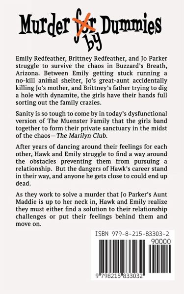 The Muensters had their niece, Marilyn. Buzzard's Breath has Emily Redfeather. Being the only "normal" one in the bunch ain't for the faint of heart.The Muensters had their niece, Marilyn. Buzzard's Breath has Emily Redfeather. Being the only "normal" one in the bunch ain't for the faint of heart. Emily Redfeather, Brittney Redfeather, and Jo Parker struggle to survive the chaos in Buzzard's Breath, Arizona. Between Emily getting stuck running a no-kill animal shelter, Jo's Great Aunt accidentally killing Jo's mother, and Brittney's father trying to dig a hole with dynamite, the girls have their hands full sorting out the family crazies. Sanity is so tough to come by in today's dysfunctional version of The Muenster Family, that the girls band together to form their private sanctuary in the midst of the chaos-The Marilyn Club. After years of dancing around their feelings for each other, Hawk and Emily struggle to find a way around the obstacles preventing them from pursuing a relationship. But the dangers of Hawk's career stand in their way, and anyone he gets close to could end up dead. As they work to solve a murder that Jo Parker's Aunt Maddie is up to her neck in, Hawk and Emily realize they must either find a solution to their relationship challenges, or put their feelings behind them and move on.