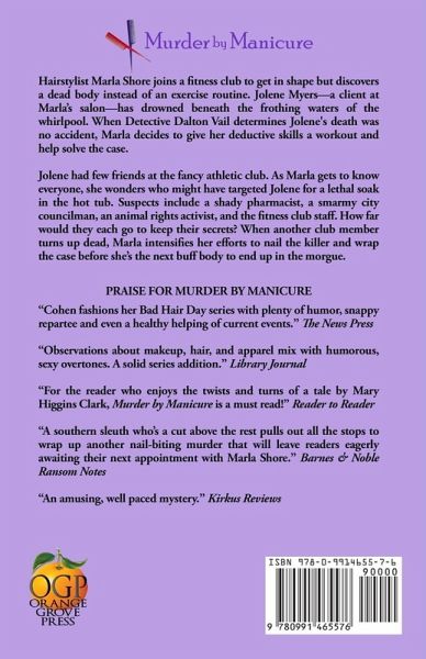 Salon owner Marla Shore discovers a whirlpool of secrets when she joins a sports club and solves a nail-biting murder in this humorous cozy mystery. Hairstylist Marla Shore joins a fitness club to get in shape but discovers a dead body instead of an exercise routine. Jolene Myers-a client at Marla's salon-has drowned beneath the frothing waters of the whirlpool. When Homicide Detective Dalton Vail determines Jolene's death was no accident, Marla decides to give her deductive skills a workout and help solve the case. Jolene had few friends at the fancy athletic club. As Marla gets to know everyone, she wonders who might have targeted Jolene for a lethal soak in the hot tub. The shady pharmacist? The smarmy city councilman? Or maybe the vocal animal rights activist? The fitness club staff had no fondness for Jolene, either. How far would they go to keep their secrets? When another member turns up dead, Marla intensifies her efforts to nail the killer and wrap the case. If she fails, the next buff body on its way to the morgue might be hers. "Marla Shore is a beguiling, very clever sleuth who teases out every clue. Absolutely delightful!" Jill Churchill, author of the Jane Jeffry & Grace and Favor mystery series.