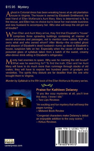A ghost in Colonial dress has been wreaking havoc at an old plantation house in Virginia. The house is owned by Elizabeth Smithwood, the best friend of Ellen McKenzie's Aunt Mary. Mary is determined to fly to the rescue, and Ellen has no choice but to leave her real estate business and new husband to accompany her. Who else will keep the old girl out of trouble? When Ellen and Aunt Mary arrive, they find that Elizabeth's "house" comprises three sprawling buildings containing all manner of secret entrances and passages, not to mention slave cabins. But who owns what and who owned whom? After Monty-the so-called ghost and stepson of Elizabeth's dead husband-turns up dead in Elizabeth's house, suspicion falls on her. Especially when the cause of death is a poisoned glass of syllabub taken from a batch of the sweet, creamy after-dinner drink sitting in Elizabeth's refrigerator. Monty had enemies to spare. Why was he roaming the old house? What was he searching for? To find the truth, Ellen and her Aunt Mary will have to do much more than rummage through stacks of old crates; they will have to expose two hundred years of grudges and vendettas. The spirits they disturb are far deadlier than the one who brought them to Virginia. Murder by Syllabub is the fifth book of the Ellen McKenzie Mystery series.