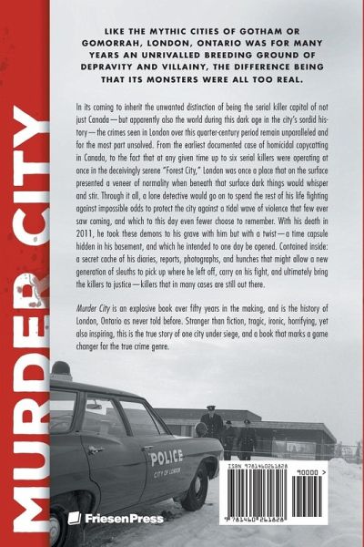 Like the mythic cities of Gotham or Gomorrah, London, Ontario was for many years an unrivalled breeding ground of depravity and villainy, the difference being that its monsters were all too real. In its coming to inherit the unwanted distinction of being the serial killer capital of not just Canada-but apparently also the world during this dark age in the city's sordid history- the crimes seen in London over this quarter-century period remain unparalleled and for the most part unsolved. From the earliest documented case of homicidal copycatting in Canada, to the fact that at any given time up to six serial killers were operating at once in the deceivingly serene "Forest City," London was once a place that on the surface presented a veneer of normality when beneath that surface dark things would whisper and stir. Through it all, a lone detective would go on to spend the rest of his life fighting against impossible odds to protect the city against a tidal wave of violence that few ever saw coming, and which to this day even fewer choose to remember. With his death in 2011, he took these demons to his grave with him but with a twist-a time capsule hidden in his basement, and which he intended to one day be opened. Contained inside: a secret cache of his diaries, reports, photographs, and hunches that might allow a new generation of sleuths to pick up where he left off, carry on his fight, and ultimately bring the killers to justice-killers that in many cases are still out there. Murder City is an explosive book over fifty years in the making, and is the history of London, Ontario as never told before. Stranger than fiction, tragic, ironic, horrifying, yet also inspiring, this is the true story of one city under siege, and a book that marks a game changer for the true crime genre.