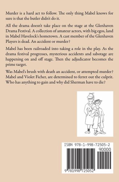Murder is a hard act to follow. The only thing Mabel knows for sure is that the butler didn't do it. All the drama doesn't take place on the stage at the Glenhaven Drama Festival. A collection of amateur actors, with big egos, land in Mabel Havelock's hometown. A cast member of the Glenhaven Players is dead. An accident or murder? Mabel has been railroaded into taking a role in the play. As the drama festival progresses, mysterious accidents and sabotage are happening on and off stage. Then the adjudicator becomes the prime target. Was Mabel's brush with death an accident, or attempted murder? Mabel and her best friend, Violet Ficher, are determined to ferret out the culprit. The problem is why? Who has anything to gain and why did Sherman have to die?