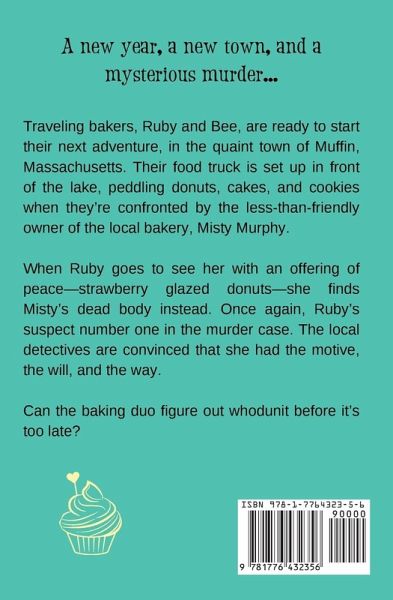 A new year, a new town, and a mysterious murder... Traveling bakers, Ruby and Bee, are ready to start their next adventure, in the quaint town of Muffin, Massachusetts. Their food truck is set up in front of the lake, peddling donuts, cakes, and cookies when they're confronted by the less-than-friendly owner of the local bakery, Misty Murphy. When Ruby goes to see her with an offering of peace-strawberry glazed donuts-she finds Misty's dead body instead. Once again, Ruby's suspect number one in the murder case. The local detectives are convinced that she had the motive, the will, and the way. Can the baking duo figure out whodunit before it's too late? Grab your copy today.