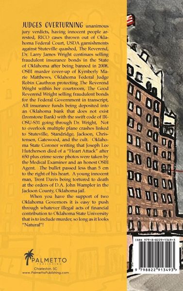 Judges overturning unanimous jury verdicts, having innocent people arrested, RICO cases thrown out of Oklahoma Federal Court, USDA garnishments against Stuteville quashed, The Reverend, Dr. Larry James Wright continues selling fraudulent insurance bonds in the State of Oklahoma after being banned in 2008, OSBI murder cover-up of Kymberly Marie Matthews, Oklahoma Federal Judge Robin Cauthron protecting The Reverend, Wright within her courtroom, The Good Reverend Wright selling fraudulent bonds for the Federal Government in transcript, All insurance funds being deposited into an Oklahoma bank that does not exist (Ironstone Bank) with the swift code of IR-OSU-S31 going through Dr. Wright, Not to overlook multiple plane crashes linked to Stuteville, Standridge, Jackson, Christensen, Gatewood, and the cult. Oklahoma State Coroner writing that Joseph Lee Hutcherson died of a "Heart Attack" after 650 plus crime scene photos were taken by the Medical Examiner and an honest OSBI Agent. The bullet passed less than 5 cm to the right of his heart. A young innocent man, Trent Davis being tortured to death at the orders of DA Wampler. When you have the support of two Oklahoma Governors it is easy to push through whatever illegal acts of financial contribution to Oklahoma State University that is to include murder, so long as it looks "Natural"!