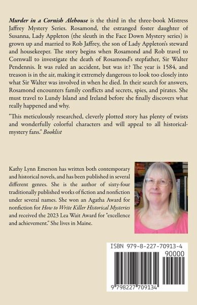 Murder in a Cornish Alehouse is the third in the three-book Mistress Jaffrey Mystery Series. Rosamond, the estranged foster daughter of Susanna, Lady Appleton (the sleuth in the Face Down Mystery series) is grown up and married to Rob Jaffrey, the son of Lady Appleton's steward and housekeeper. The story begins when Rosamond and Rob travel to Cornwall to investigate the death of Rosamond's stepfather, Sir Walter Pendennis. It was ruled an accident, but was it? The year is 1584, and treason is in the air, making it extremely dangerous to look too closely into what Sir Walter was involved in when he died. In their search for answers, Rosamond encounters family conflicts and secrets, spies, and pirates. She must travel to Lundy Island and Ireland before she finally discovers what really happened and why. "This meticulously researched, cleverly plotted story has plenty of twists and wonderfully colorful characters and will appeal to all historical-mystery fans." Booklist