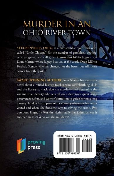 STEUBENVILLE, OHIO, is a hardscrabble river town once called "Little Chicago" for the number of gamblers, bootleggers, gangsters, and call girls. Known also for its famous son Dean Martin, whose legacy lives on at the yearly Dean Martin Festival, Steubenville has changed for the better but still hears echoes from the past. AWARD-WINNING AUTHOR Janet Shailer has created a novel about a retired history teacher who uses sleuthing skills and the library to track down a murderer and determine the victim's true identity. She sets off on a detective's quest using perseverance, fear, and women's intuition to guide her on a long journey. It takes her to parts of the country where she has never visited and where she finds the keys to solving the crime. Two questions linger. 1) Was the victim really her father or was it another man? 2) Who was the murderer?
