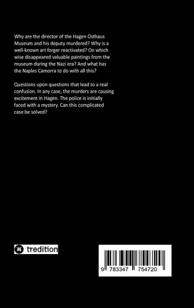Why are the director of the Hagen Osthaus Museum and his deputy murdered? Why is a well-known art forger reactivated? On which wise disappeared valuable paintings from the museum during the Nazi era? And what has the Naples Camorra to do with all this?Questions upon questions that lead to a real confusion. In any case, the murders are causing excitement in Hagen. The police is initially faced with a mystery. Can this complicated case be solved?