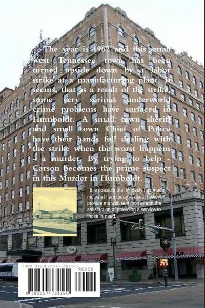 The year is 1962 and this small west Tennessee town has been turned upside down by a labor strike at its main manufacturing plant. It seems that, as result of the strike, some very serious underworld crime problems have surfaced in Humboldt. A small town sheriff and small town Chief of Police have their hands full dealing with the strike - when the worst happens - one of the principal figures surrounding the labor problems is murdered. Carson Reno is very familiar with Humboldt - after all, he grew up and went to high school there. But Carson has a successful private investigation business in Memphis and no desire or reason to get involved. However, circumstances pull him into the turmoil and a situation that grows more dangerous everyday. By trying to not become involved, he becomes deeply involved and ultimately the prime suspect for the Murder in Humboldt.