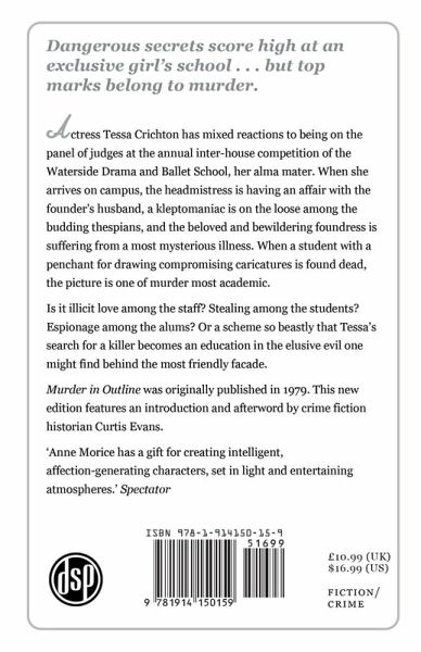 Anne Morice, née Felicity Shaw, was born in Kent in 1916. Her mother Muriel Rose was the natural daughter of Rebecca Gould and Charles Morice. Muriel Rose married a Kentish doctor, and they had a daughter, Elizabeth. Muriel Rose's three later daughters-Angela, Felicity and Yvonne-were fathered by playwright Frederick Lonsdale. Felicity's older sister Angela became an actress, married actor and theatrical agent Robin Fox, and produced England's Fox acting dynasty, including her sons Edward and James and grandchildren Laurence, Jack, Emilia and Freddie. Felicity went to work in the office of the GPO Film Unit. There Felicity met and married documentarian Alexander Shaw. They had three children and lived in various countries. Felicity wrote two well-received novels in the 1950's, but did not publish again until successfully launching her Tessa Crichton mystery series in 1970, buying a house in Hambleden, near Henley-on-Thames, on the proceeds. Her last novel was published a year after her death at the age of seventy-three on May 18th, 1989.