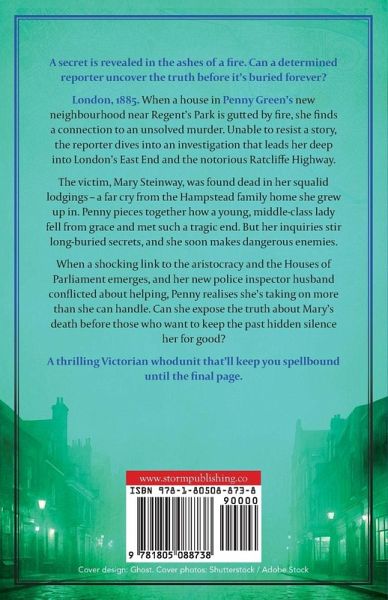 A secret is revealed in the ashes of a fire. Can a determined reporter uncover the truth before it's buried forever? London, 1884. When a house in Penny Green's new neighbourhood near Regent's Park is gutted by fire, she finds a connection to an unsolved murder. Unable to resist a story, the reporter dives into an investigation that leads her deep into London's East End and the notorious Ratcliffe Highway. The victim, Mary Steinway, was found dead in her squalid lodgings - a far cry from the Hampstead family home she grew up in. Penny pieces together how a young, middle-class lady fell from grace and met such a tragic end. But her inquiries stir long-buried secrets, and she soon makes dangerous enemies. When a shocking link to the aristocracy and the Houses of Parliament emerges, and her new police inspector husband conflicted about helping, Penny realises she's taking on more than she can handle. Can she expose the truth about Mary's death before those who want to keep the past hidden silence her for good? A thrilling Victorian whodunit that'll keep you spellbound until the final page.