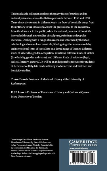 This invaluable collection explores the many faces of murder and its cultural presences across the Italian peninsula in the Renaissance. Dealing with a range of murders and informed by the latest criminological research on homicide, the book brings together research by an international team of specialists in a traditionally understudied field.