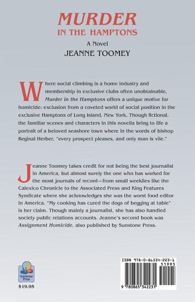 Where social climbing is a home industry and membership in exclusive clubs often unobtainable, "Murder in the Hamptons" offers a unique motive for homicide: exclusion from a coveted world of social position in the exclusive Hamptons of Long Island, New York. Though fictional, the familiar scenes and characters in this novella bring to life a portrait of a beloved seashore town where in the words of bishop Reginal Herber, "every prospect pleases, and only man is vile."