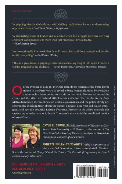 On the evening of May 16, 1937, the train doors opened at the Porte Doree station in the Paris Metro to reveal a dying woman slumped by a window, an eight-inch stiletto buried to its hilt in her neck. No one witnessed the crime, and the killer left behind little forensic evidence. This first-ever murder in the Paris Metro dominated the headlines for weeks during the summer of 1937, as journalists and the police slowly uncovered the shocking truth about the victim: a twenty-nine-year-old Italian immigrant, the beautiful and elusive Laetitia Toureaux. Toureaux toiled each day in a factory, but spent her nights working as a spy in the seamy Parisian underworld. Just as the dangerous spy Mata Hari fascinated Parisians of an earlier generation, the mystery of Toureaux's murder held the French public spellbound in pre-war Paris, as the police tried and failed to identify her assassin. In Murder in the Metro, Gayle K. Brunelle and Annette Finley-Croswhite unravel Toureaux's complicated and mysterious life, assessing her complex identity within the larger political context of the time. They follow the trail of Toureaux's murder investigation to the Comite Secret d'Action Revolutionnaire, a secret right-wing political organization popularly known as the Cagoule, or "hooded ones." Obsessed with the Communist threat they perceived in the growing power of labor unions and the French left wing, the Cagoule's leaders aimed to overthrow France's Third Republic and install an authoritarian regime allied with Italy. With Mussolini as their ally and Italian fascism as their model, they did not shrink from committing violent crimes and fomenting terror to accomplish their goal. In 1936, Toureaux -- at the behest of the French police -- infiltrated this dangerous group of terrorists and seduced one of its leaders, Gabriel Jeantet, to gain more information. This operation, the authors show, eventually cost Toureaux her life. The tale of Laetitia Toureaux epitomizes the turbulence of 1930s France, as the country prepared for a war most people dreaded but assumed would come. This period, therefore, generated great anxiety but also offered new opportunities -- and risks -- to Toureaux as she embraced the identity of a "modern" woman. The authors unravel her murder as they detail her story and that of the Cagoule, within the popular culture and conflicted politics of 1930s France. By examining documents related to Toureaux's murder -- documents the French government has sealed from public view until 2038 -- Brunelle and Finley-Croswhite link Toureaux's death not only to the Cagoule but also to the Italian secret service, for whom she acted as an informant. Their research provides likely answers to the question of the identity of Toureaux's murderer and offers a fascinating look at the dark and dangerous streets of pre--World War II Paris.