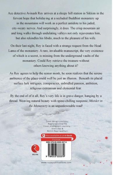 Ace detective Avinash Roy arrives at a sleepy hill station in Sikkim in the fervent hope that holidaying at a secluded Buddhist monastery up in the mountains will work as a perfect antidote to his jaded, city-weary nerves. And surprisingly, it does. The crisp mountain air and long walks through undulating valleys not only rejuvenates him, but also rekindles his libido, much to the pleasure of his wife. On their last night, Roy is faced with a strange request from the Head Lama of the monastery. A rare, invaluable manuscript, the very existence of which is a secret, is missing from the underground vaults of the monastery. Could Roy retrieve the treasure without others knowing anything about it? As Roy agrees to help the senior monk, he soon realizes that the serene ambience of the place could well be just an illusion. Beneath its placid surface lurk intrigues, conspiracies, unbridled passion, ambition, religious extremism and elemental fear. By the end of of it all, Roys very life is in grave danger, hanging by a thread. Weaving natural beauty with spine-chilling suspense, Murder in the Monastery is an unputdownable read!