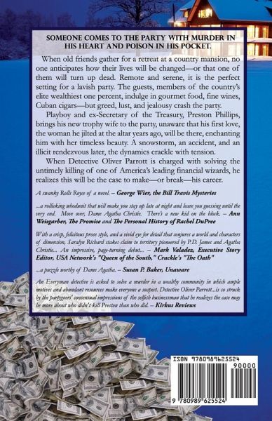 SOMEONE COMES TO THE PARTY WITH MURDER IN HIS HEART AND POISON IN HIS POCKET. A lavish celebration. A rare poison. A clever plan. A milestone birthday party at a country mansion in Brandywine Valley brings old friends together, all glamorous, wealthy, and politically well-connected. Charismatic playboy, Preston Phillips, brings his trophy wife to the party, unaware that his first love, the woman he jilted at the altar, will be there, enchanting him with her timeless beauty. A snowstorm, an accident, and an illicit rendezvous later, the dynamics crackle with tension. When Detective Oliver Parrott is charged with solving the untimely killing of one of America's leading financial wizards, he realizes this will be the case to make-or break-his career. Ingenious and gripping, MURDER IN THE ONE PERCENT opens up to readers the opulent world of the ultra-wealthy in Philadelphia and New York-and reveals a killer that only Detective Parrott can catch. When Detective Oliver Parrott is charged with solving the untimely killing of one of America's leading financial wizards, he realizes this will be the case to make-or break-his career.