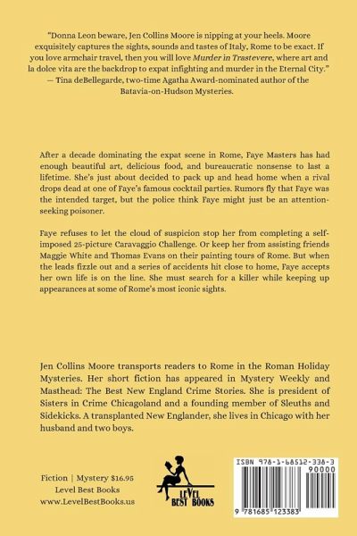 After a decade dominating the expat scene in Rome, Faye Masters has had enough beautiful art, delicious food, and bureaucratic nonsense to last a lifetime. She's just about decided to pack up and head home when a rival drops dead at one of Faye's famous cocktail parties. Rumors fly that Faye was the intended target, but the police think Faye might just be an attention-seeking poisoner. Faye refuses to let the cloud of suspicion stop her from completing a self-imposed 25-picture Caravaggio Challenge. Or keep her from assisting friends Maggie White and Thomas Evans on their painting tours of Rome. But when the leads fizzle out and a series of accidents hit close to home, Faye accepts her own life is on the line. She must search for a killer while keeping up appearances at some of Rome's most iconic sights.